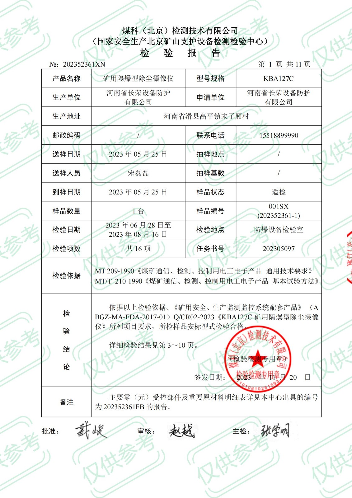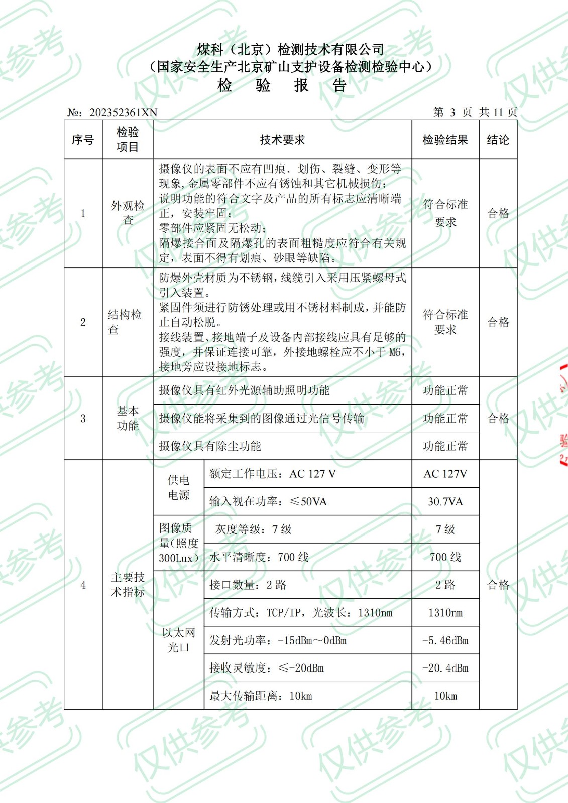 礦用本安型攝像儀檢 驗(yàn) 報 告KBA12