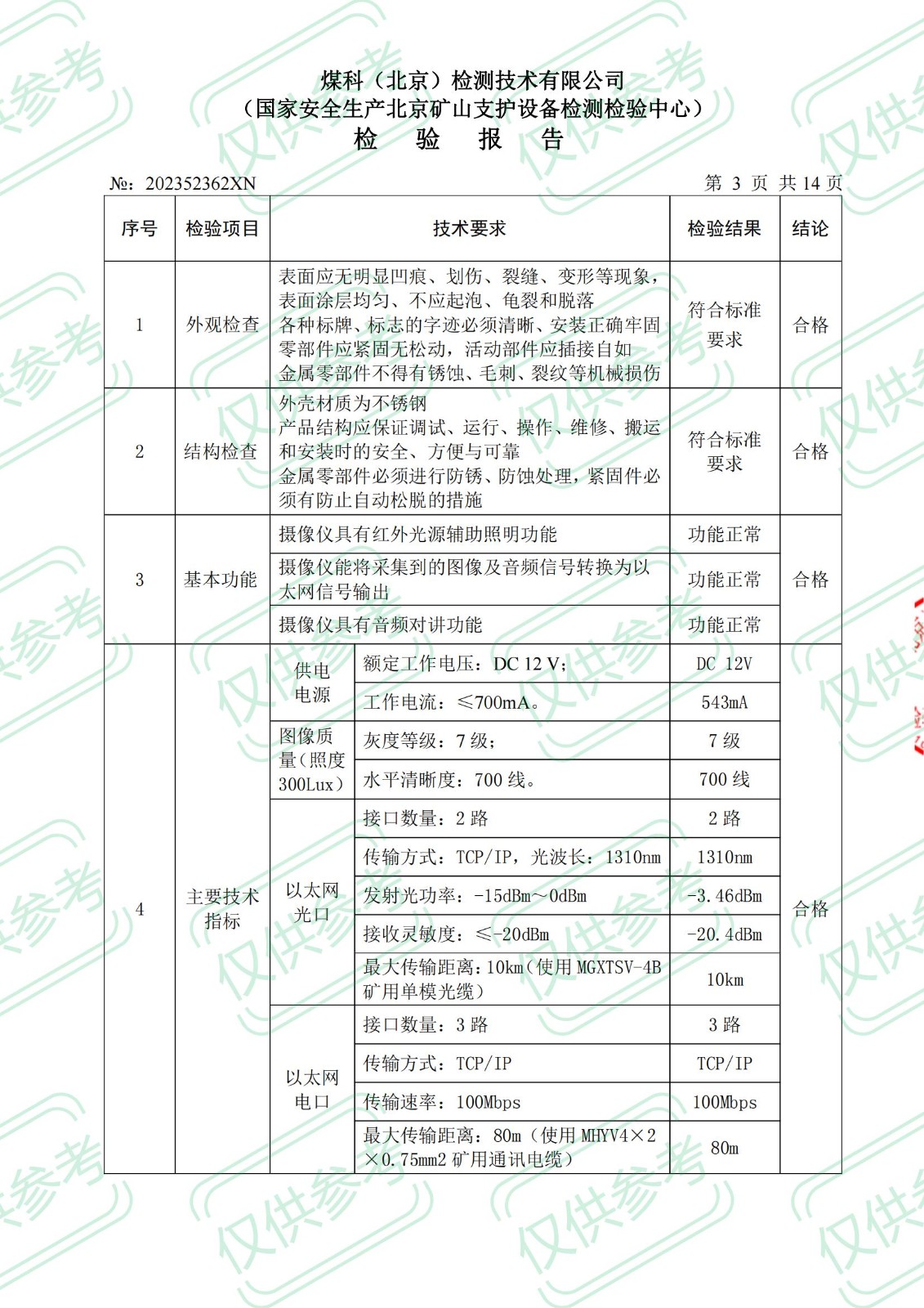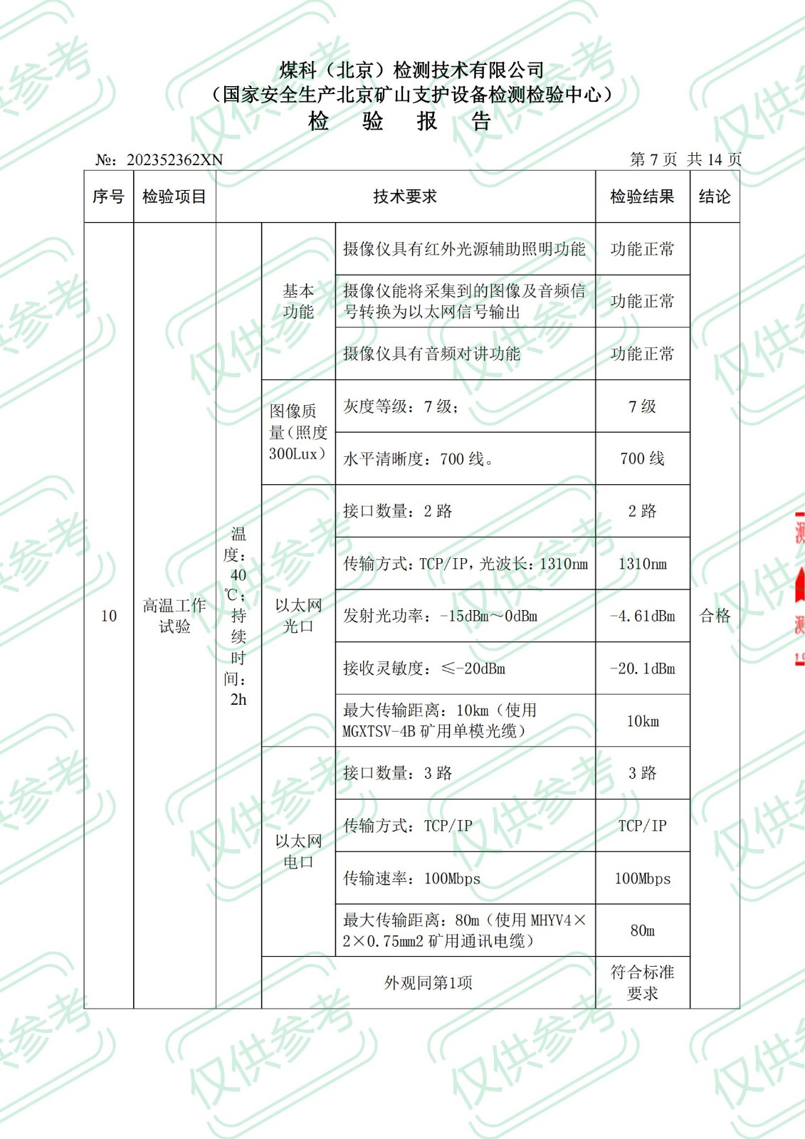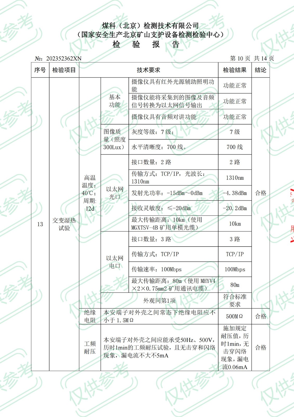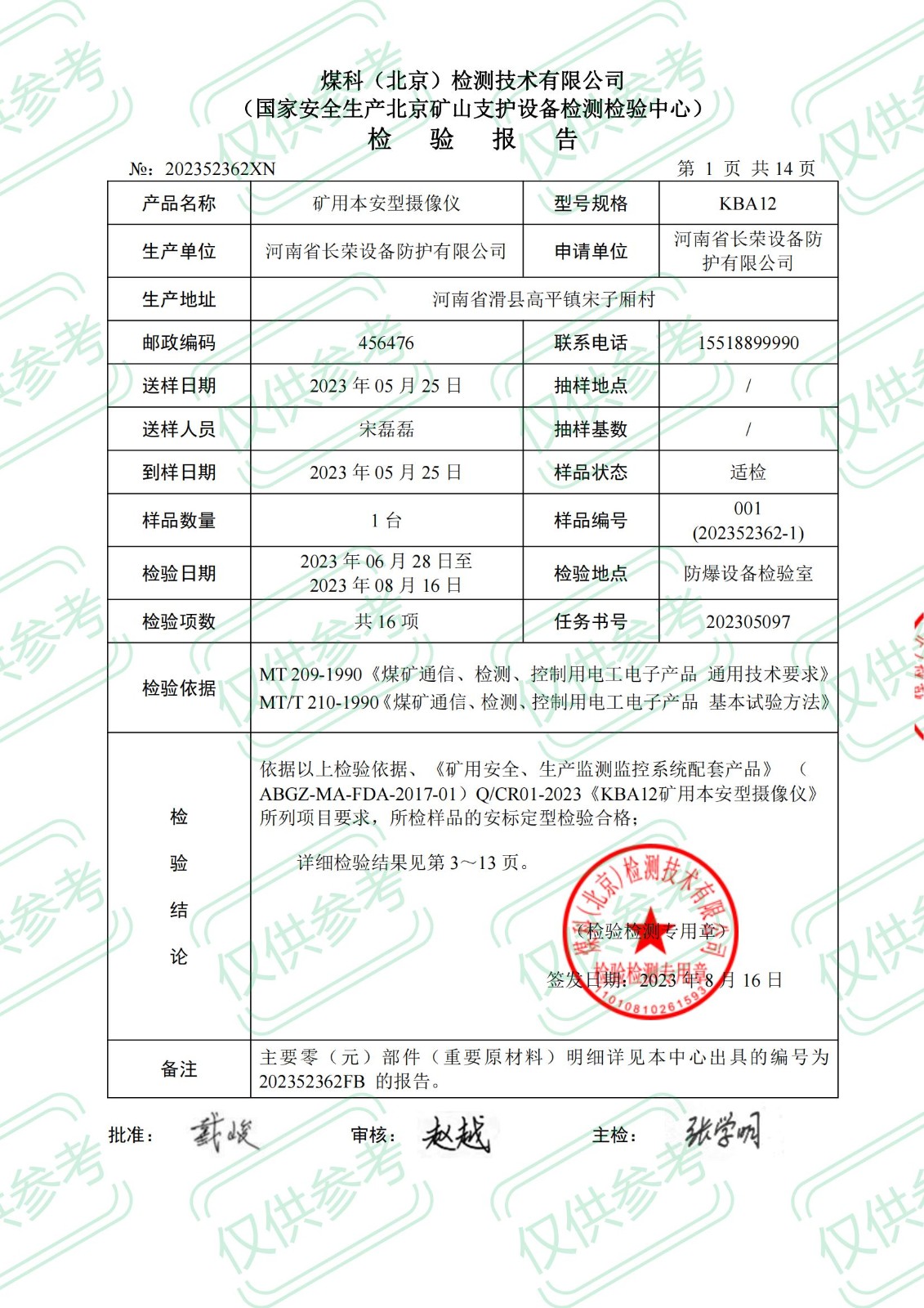 礦用本安型攝像儀檢 驗(yàn) 報(bào) 告KBA12